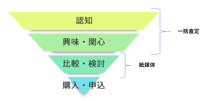 | 紙媒体(チラシ等)の反響 | 売却することは既に決まっており、あとは「どの不動産会社に任せるか」を決める段階 | 現在層 |